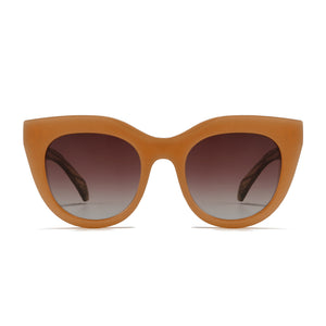 With oversized and dramatic proportions, our Milla sunglasses are reminiscent of a cat eye style and are the perfect statement sunglasses to suit all face shapes. With a luxurious caramel toned frame and brown gradient lenses they love to strike a pose!